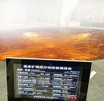 每一種礦物質溫泉都有他特有的礦物質含量標準,實時監(jiān)控才能始終維持水中特定礦物離子濃度,才能精準有效地發(fā)揮對人體的健康促進作用。如:硫磺泉H₂S濃度控制在2mg/L。達到軟化皮膚角質、消炎殺菌等作用。另如:弱堿性單純泉,控制PH值在7.3-8.5之間維持弱堿性屬性,是人體取向酸堿平衡體質達到健康養(yǎng)生功效。